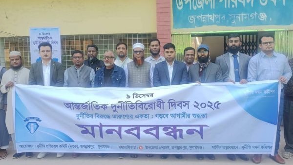 জগন্নাথপুরে আন্তর্জাতিক দুর্নীতিবিরোধী দিবস উপলক্ষে মানববন্ধন ও আলোচনা সভা অনুষ্ঠিত