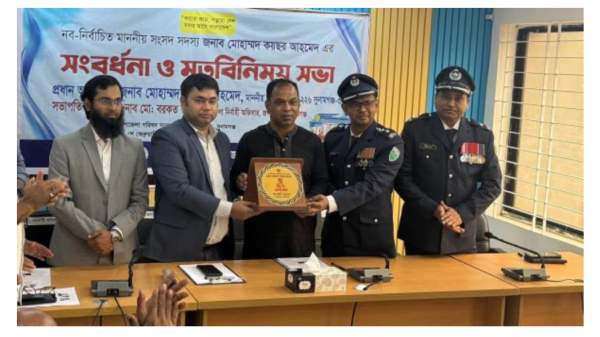 জগন্নাথপুরে প্রশাসনের পক্ষে এমপি কয়ছর আহমেদকে সংবর্ধনা প্রদান